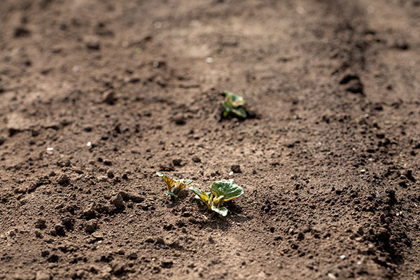 ジャガイモの芽が、土のなから出てきました。
